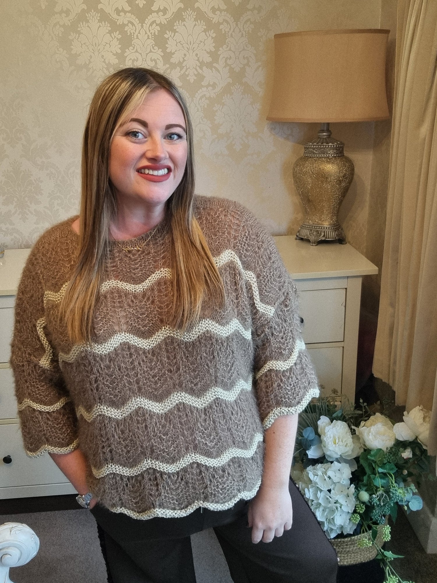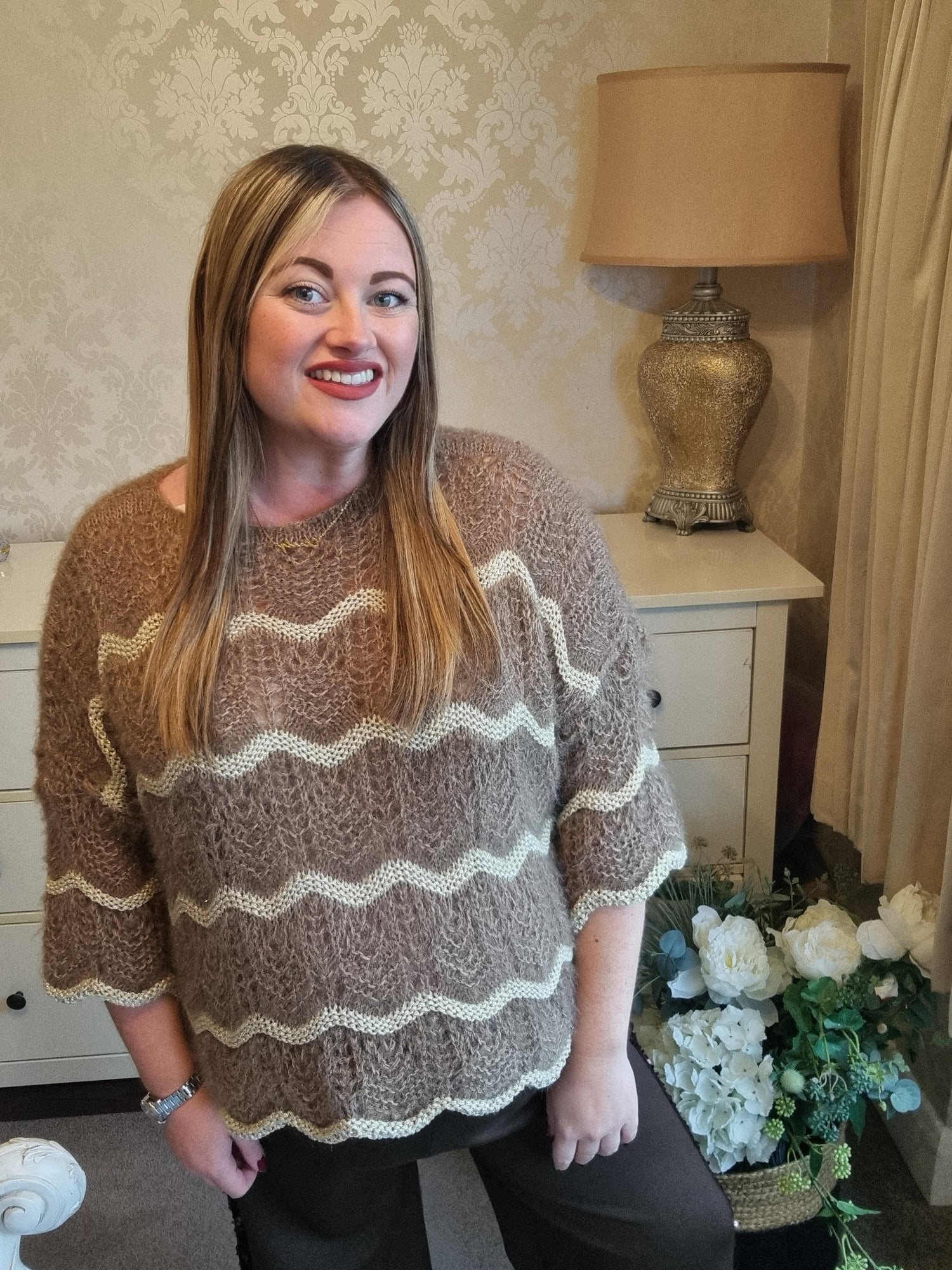 Lovely and soft patterned jumper. One size, fit's up to size 18.