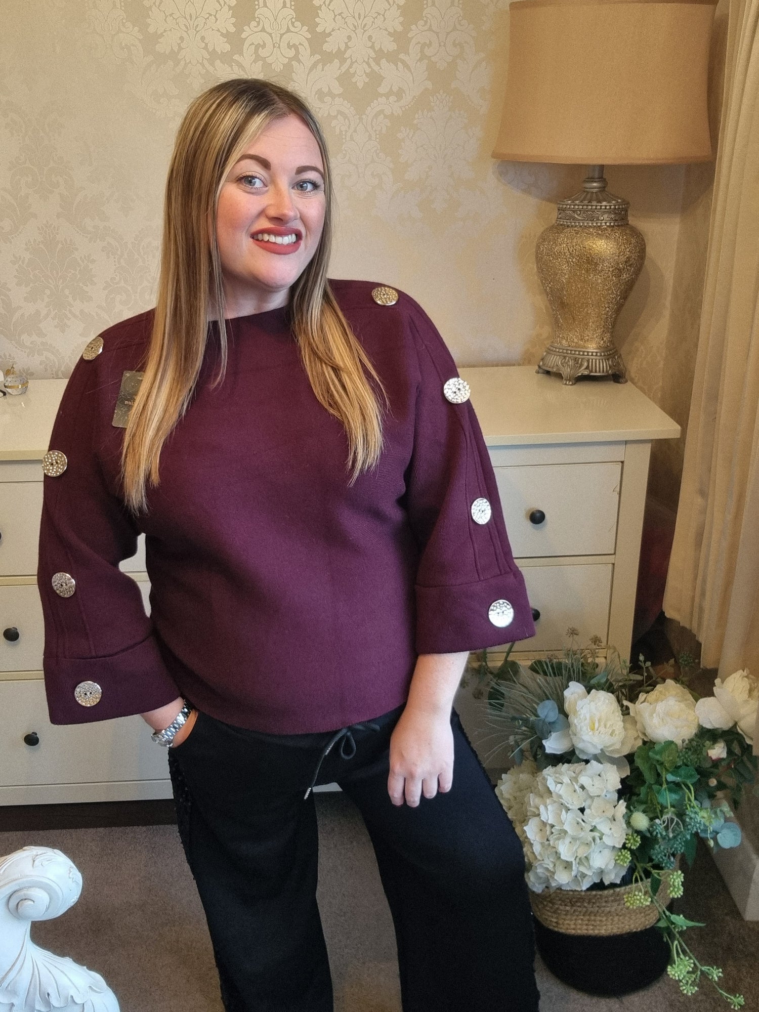 Lovely and thick button sleeve detailed jumpers. One size, fit's up to size 18.