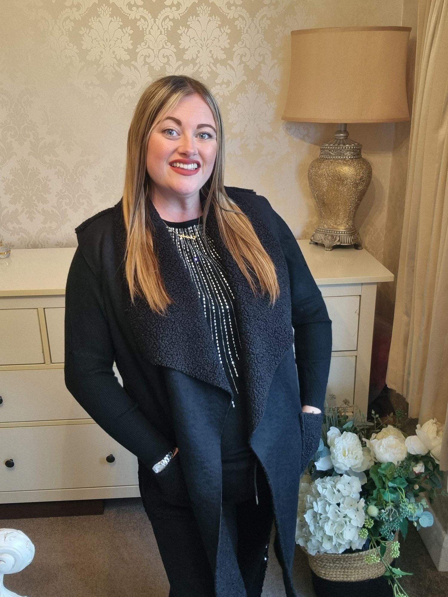 Lovely and warm teddy fleece lined gilet with pockets. One size, fit's up to size 18.